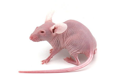 1973 年丹麥的 C.WFriis 在 BALB/c 近交系小鼠中發(fā)現(xiàn)自發(fā)性突變的無毛小鼠,該突變小鼠胸腺發(fā)育不良, 免疫 T 細(xì)胞缺失,而培育成了 BALB/c-nu;